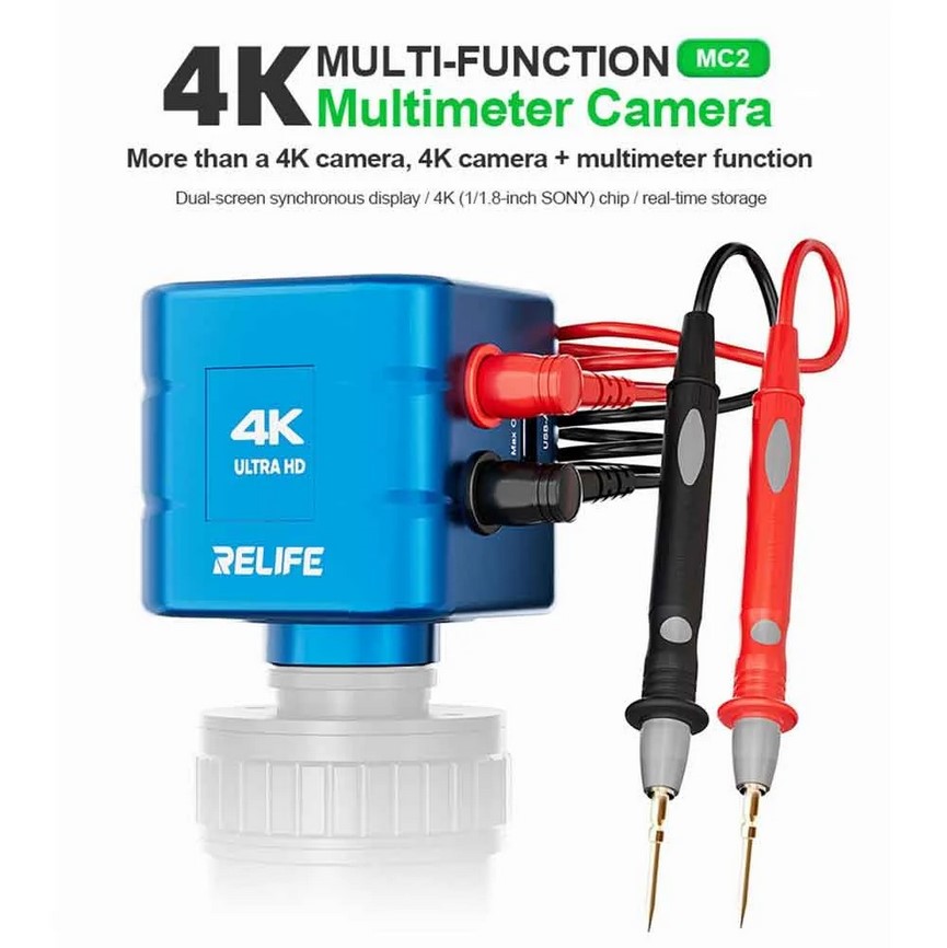 - The RELIFE MC2 Multi-Function 4K Microscope Camera is a powerful imaging and measurement tool designed for electronics technicians, mobile repair professionals and industrial inspection environments. Offering 4k ultra-high-definition imaging, dual-screen synchronous display and precise multimeter functionality, this advanced camera transforms your microscope into a versatile diagnostic workstation.